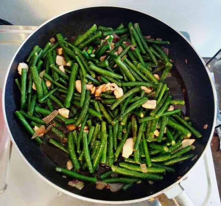 - Once it started to boil, lower the heat and let it simmer for 10 minutes till the green beans is cooked.