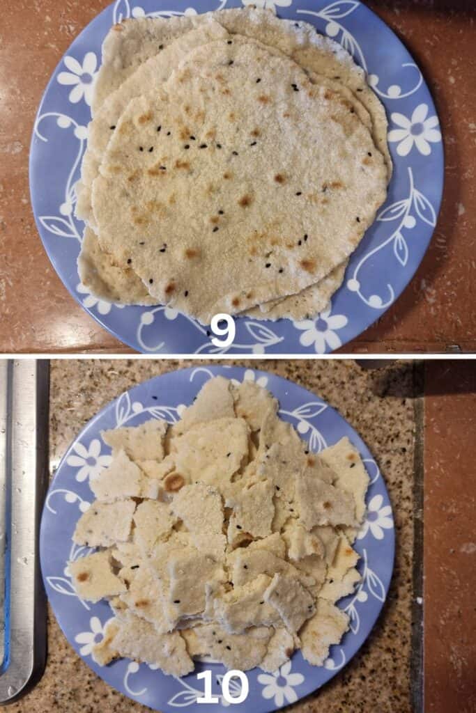 Step 9 and 10: For the rougag flatbread, tear it into smaller pieces.