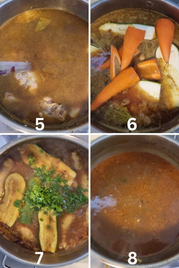 - Add chickpeas, baton-cut zucchini, and carrots. Simmer for approximately 30 minutes until the chicken is thoroughly cooked.