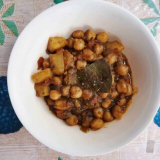 Aloo chole recipe is an Indian dish that is mixed with chickpeas, potatoes, tomatoes and different spices & herbs. It is a vegan-friendly dish that is best eaten with roti flatbread or rice.