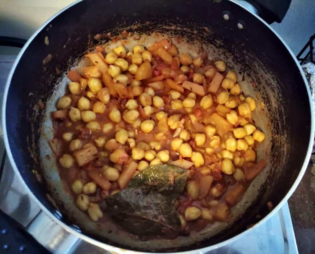 If you don't want to spend time soaking overnight or boiling in the pot, I highly recommend you use canned chickpeas. They are already soft and you can just cook it directly in the pan along with the rest of the ingredients.