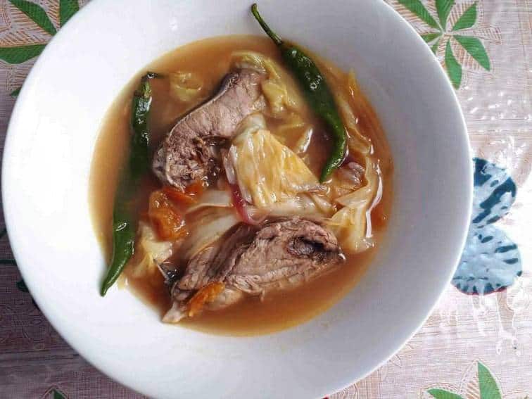 What makes it sour is that the soup is made from either tamarind broth or lemon juice. There are different variations of sinigang which includes pork and shrimp, and you can add other vegetables such as eggplant or spinach.