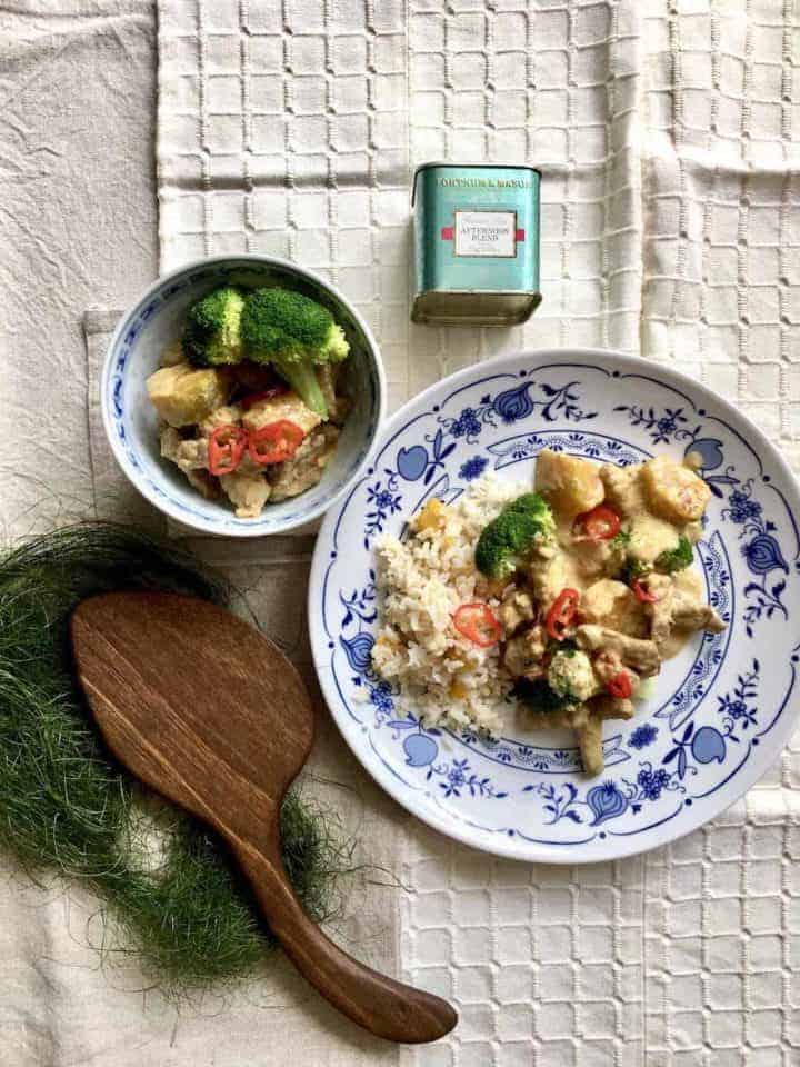 The tamarind juice gives Singapore assam fish curry a delicious tanginess and adding the coconut cream, which is unusual for this dish, lets us get away without adding palm sugar (which usually goes hand in hand with tamarind)- just as delicious as the original but healthier!