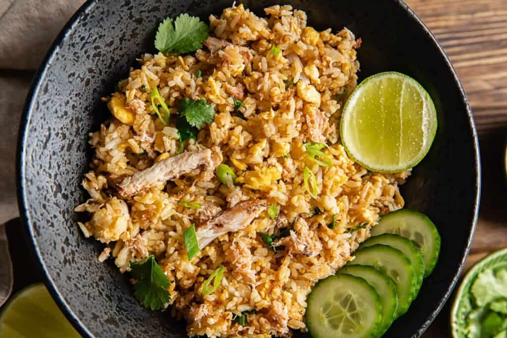 Crab fried rice recipe delivers buckets of flavor despite its simplicity of method and ingredients. This Thai comfort food meal is so easy to recreate at home.