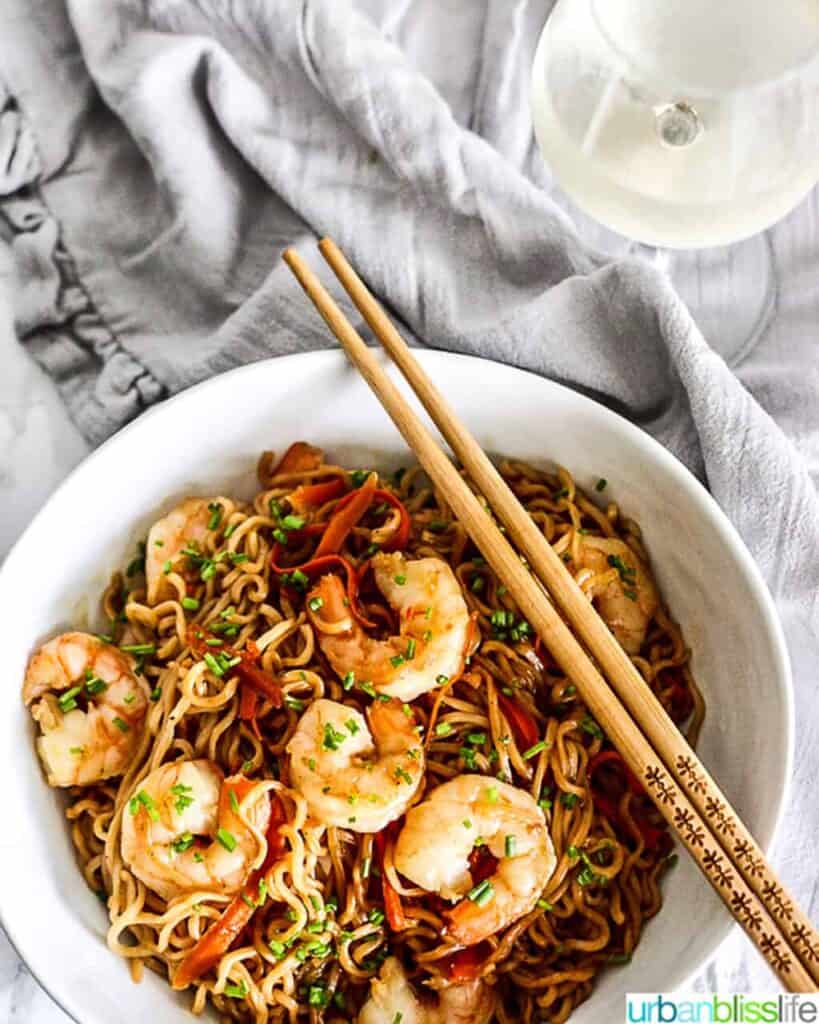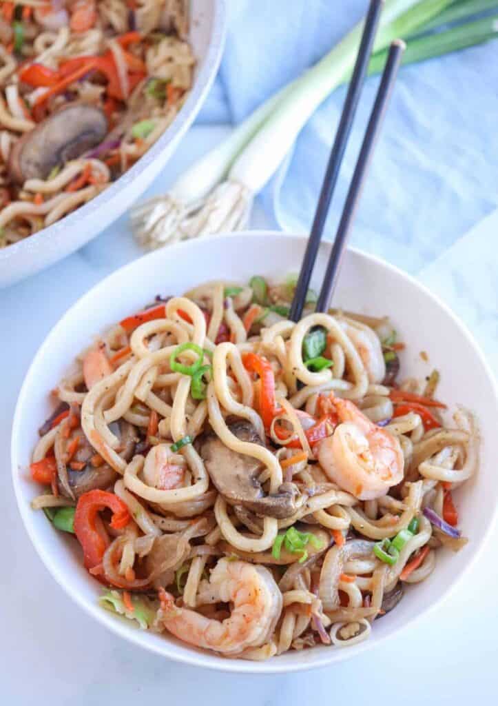 Shrimp Yaki Udon is a super flavorful, restaurant-quality Japanese-inspired noodle stir-fry that’s better and healthier than take-out! It’s packed with veggies, thick and silky udon noodles and seared shrimp and super quick and easy to make.