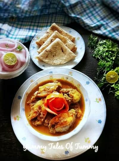 In this recipe, the fish is marinated with turmeric, chili, and coriander powder which is then pan-fried in little oil. And then later it is cooked in a masala gravy so it will become a curry dish.