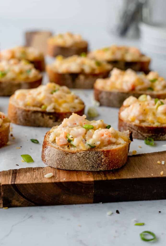 Vietnamese Shrimp Toast, or Banh Mi Chien Tom, is the ultimate party appetizer! Shrimp, mayonnaise, and cheese are spread onto a baguette and baked to perfection. This easy authentic recipe only requires 30 minutes and 7 ingredients, and can be made in the oven or air fryer.
