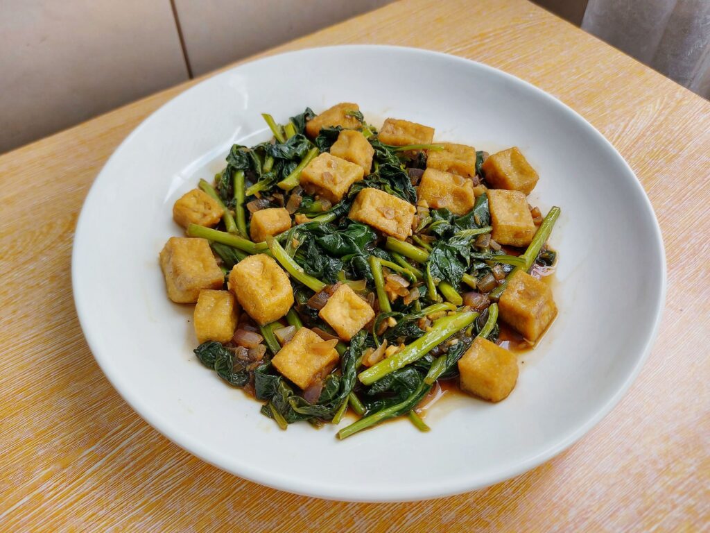 Adobong Kangkong with Tofu is a Filipino vegetable recipe that is mixed with fried tofu, kangkong leaves (water spinach), and soy sauce. This is one most popular kangkong dish that is best to served with rice.