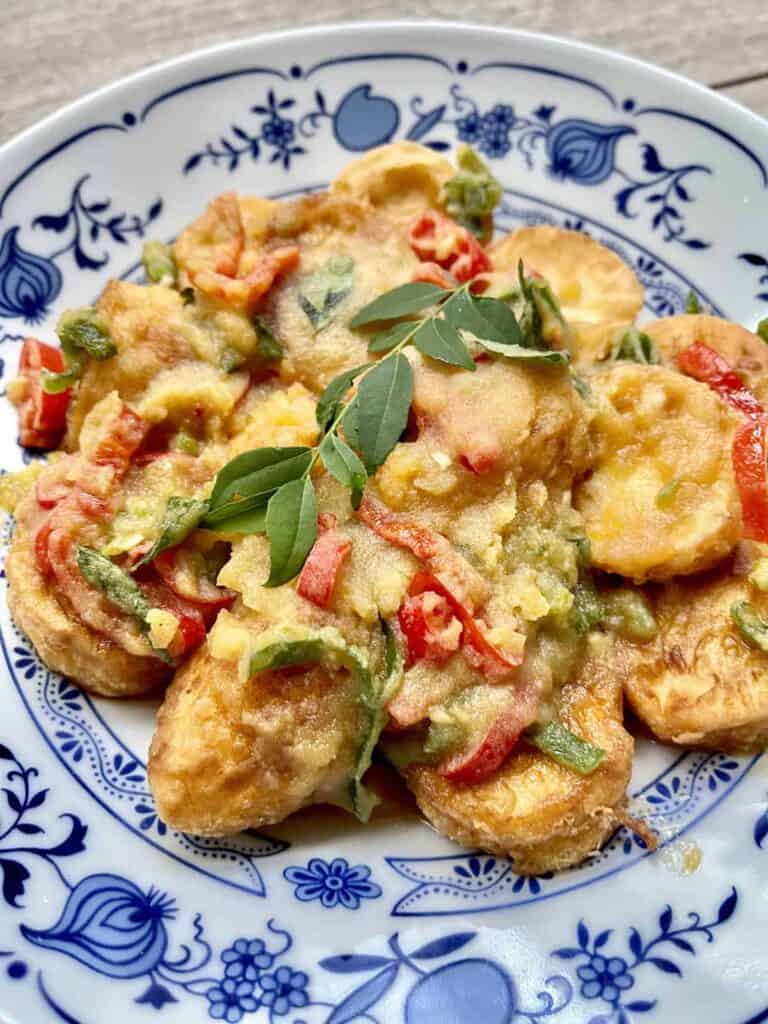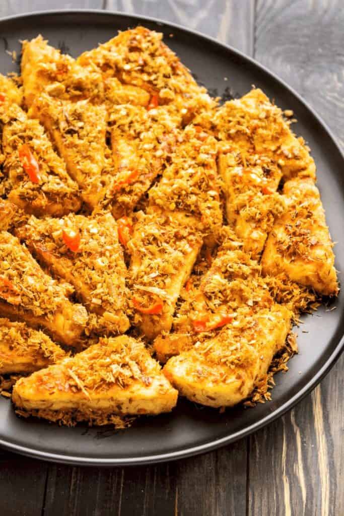 This recipe is fried tofu that is crispy mixed with a salted egg yolk sauce. It consists of a curry leaf and different spices that can be made in just 30 minutes.