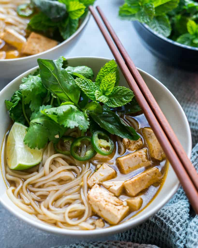 This Vegan Pho is a Vietnamese noodle soup which consists of rice noodle, different herbs, and of course, tofu. This hot bowl of noodle soup is just the perfect combination for a delicious and healthy meal.