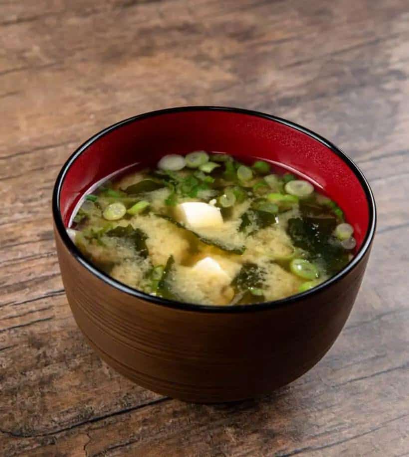 This Miso Soup is a traditional Japanese soup containing a dashi stock mixed with miso paste, which is used for broth soup, giving an umami flavor. It is a healthy, nutritious, and heartwarming homemade soup that is combined with soft tofu, green onion, and tender kombu.