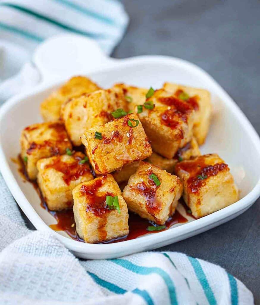 This tofu recipe is deep fried, which makes it crispy on the outside but also soft inside. The crispy tofu is mixed with a special teriyaki sauce which you served as an appetizer or main dish, and of course, it is best paired with rice.