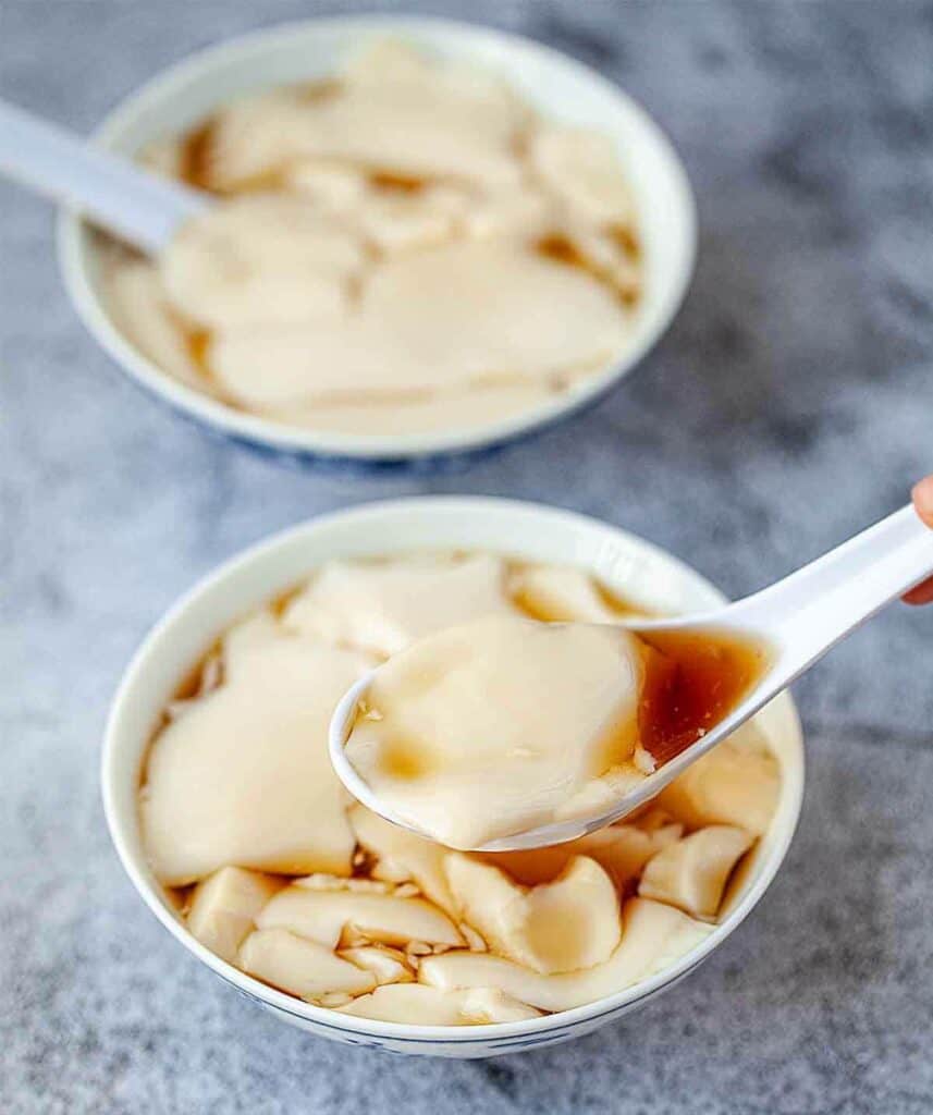 The Tofu pudding is a Chinese soybean curd dessert that is made with soft tofu. This recipe is usually sweet and serves as a dessert.