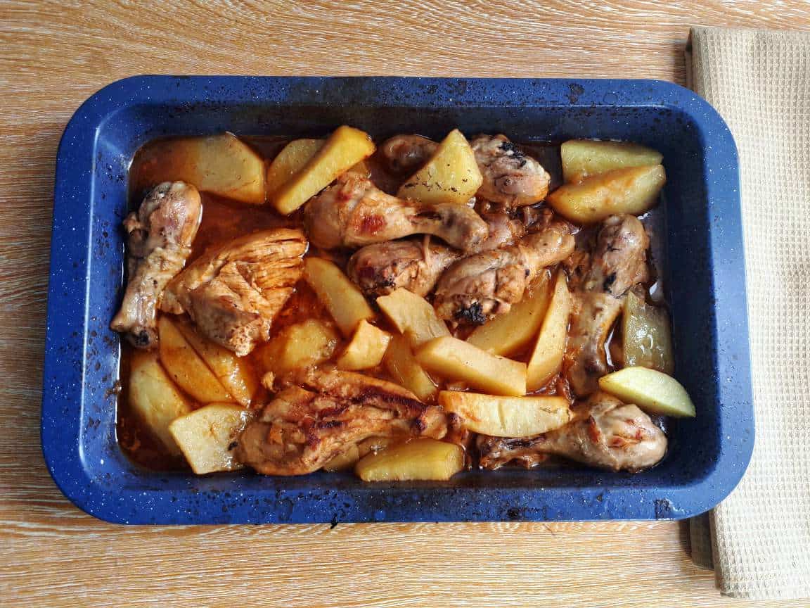 For full detail of the recipe, here is the recipe card of Baked Chicken and Potatoes with Tomato Sauce.
