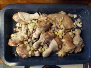 Secondly, I am using black pepper, salt, and onion for seasoning my chicken. You need a lot of onion for this dish since it makes the chicken flavorful.