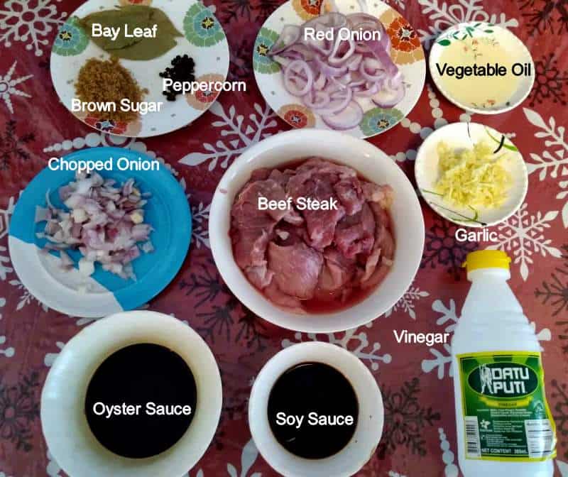 My cooking technique is a bit different compared to others. That is because before I sauté the beef, I marinated it with garlic, brown sugar, bay leaves, soy sauce, oyster sauce, and vinegar.  It will help the beef absorb the flavor, making it more tasty and flavorful.