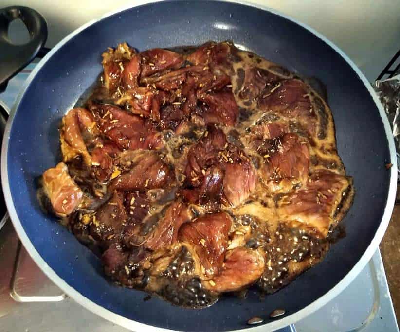 You can use chicken, which we called it Chicken Adobo. Or you can use pork, which in the Philippines, we call this pork bistek. But, I don’t use that meat in my dish since I don’t eat pork.