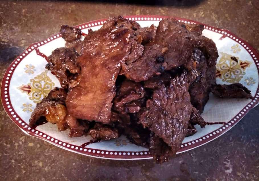 • In a large bowl, mix the beef, soy sauce, oyster sauce, vinegar, grated garlic, brown sugar, and peppercorn. Let it marinated for 15 to 30 minutes