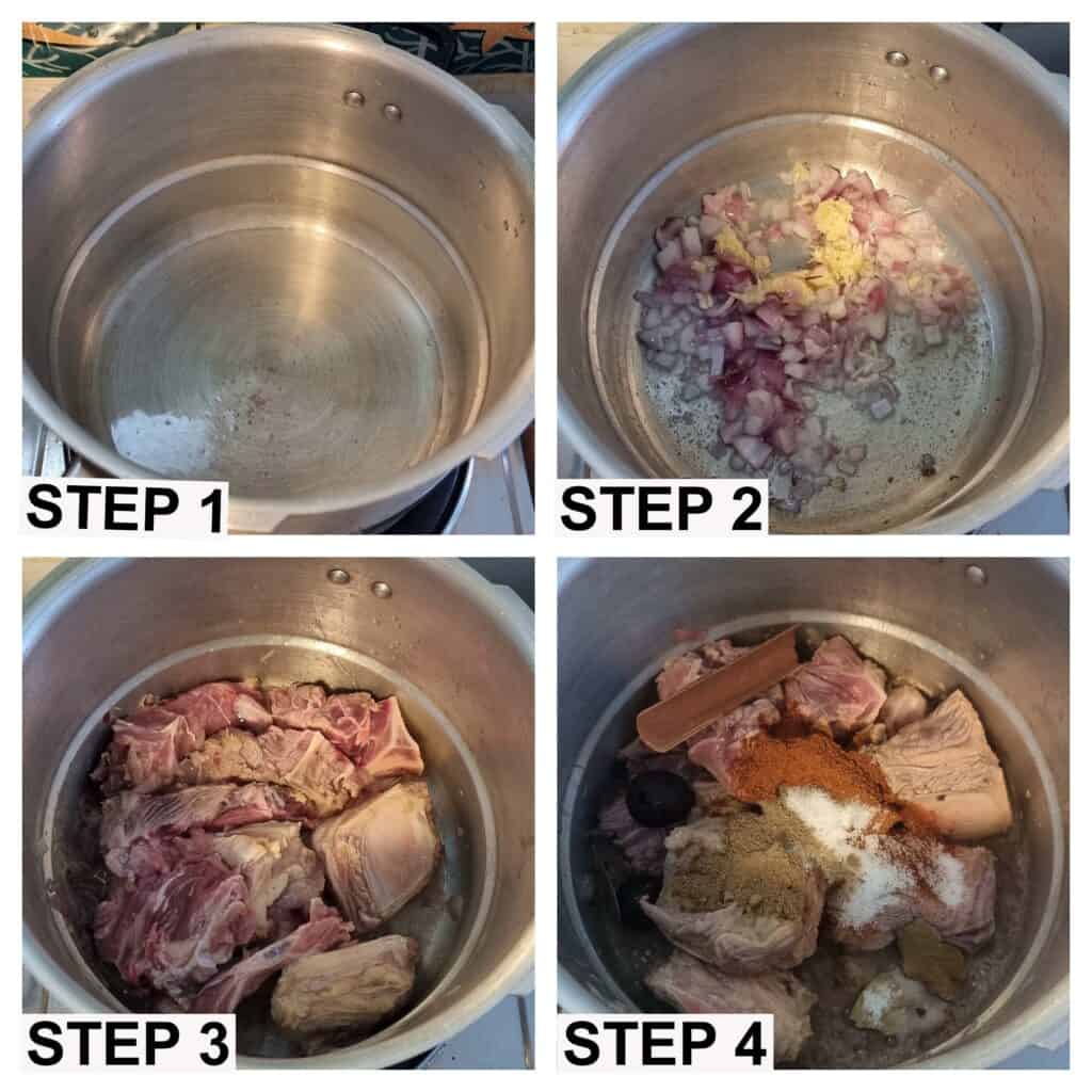 Beef with Bones: I am using beef that has bones since it will add flavor and tenderize the meat when cooking in the pressure cooker. You can use either beef ribs or shank.