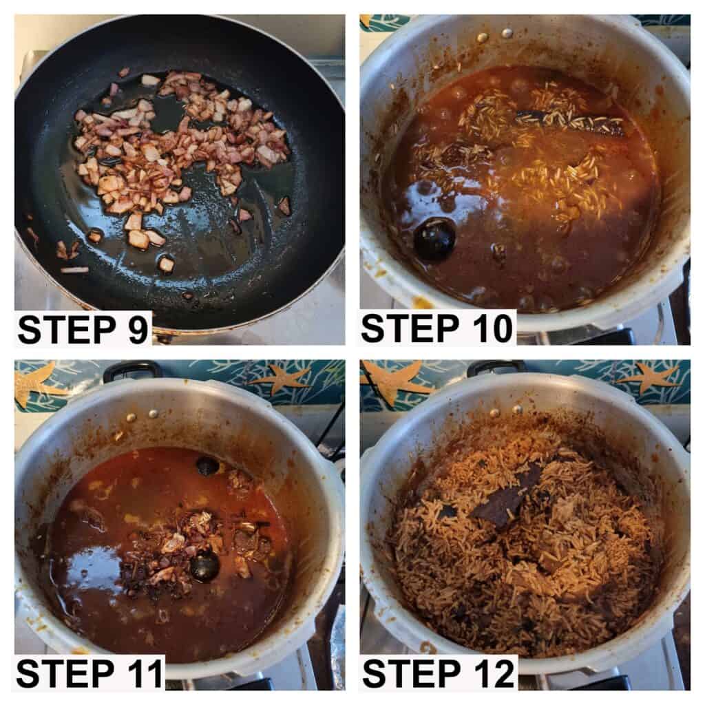 - When you are cooking the beef, I saute the remaining half of the red onion until it turns golden brown. Set it aside since you will need that for the rice.