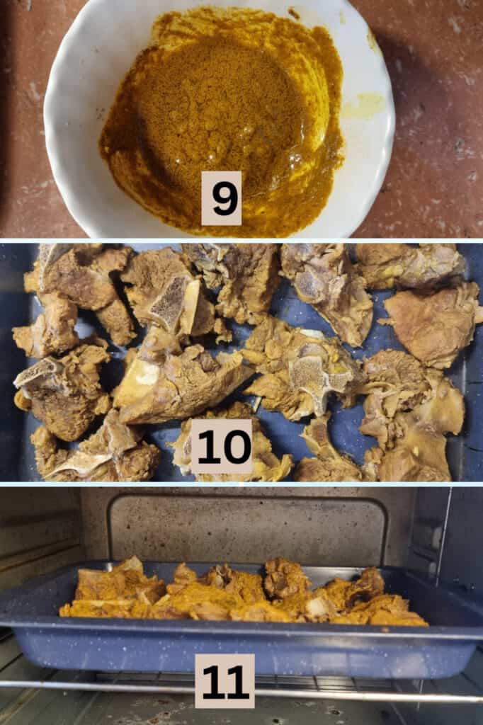 Traditionally, mandi is cooked in a pit or ground oven, but because it is not possible to cook that while in the house, I am using a pressure cooker and oven instead.