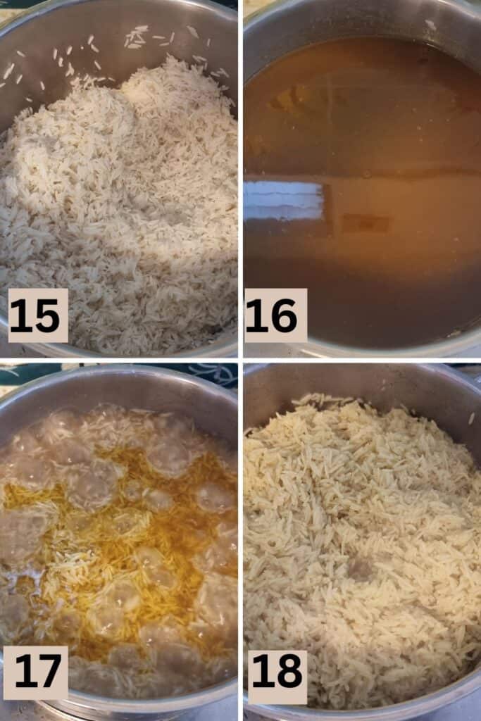 - Step 15- Pour 1-2 tablespoons of vegetable oil before adding the soaked basmati rice.