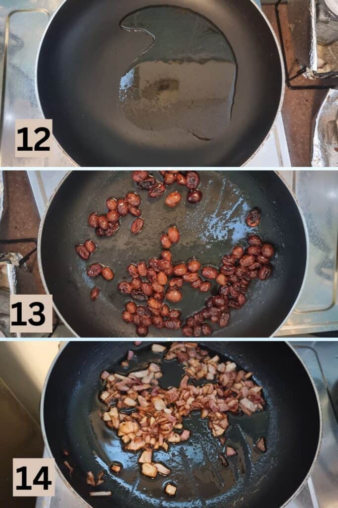 - Step 14- Fry the chopped red onion until it becomes golden brown. Set it aside as well.