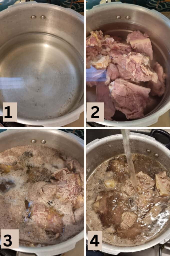 Step 4: Transfer the pot into the dishwasher basin. Remove all the scum and rewash the beef with water. Once done, set it aside.
