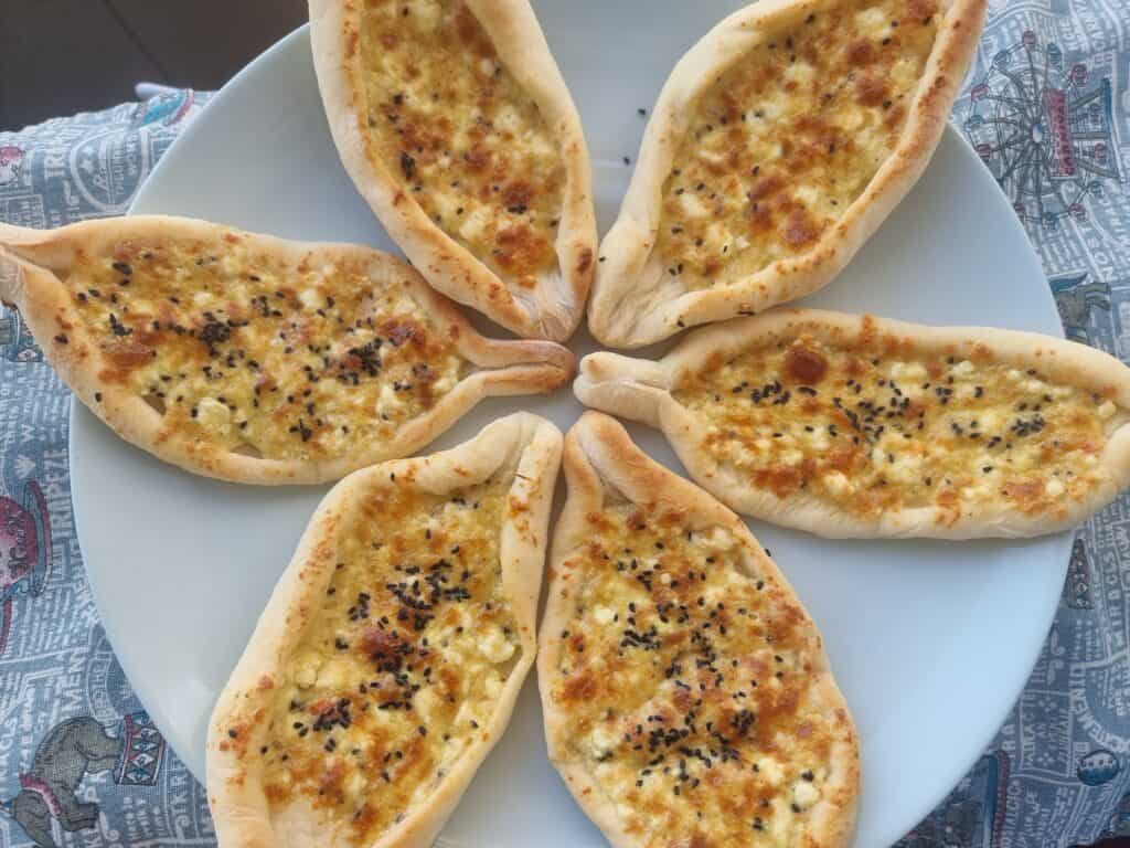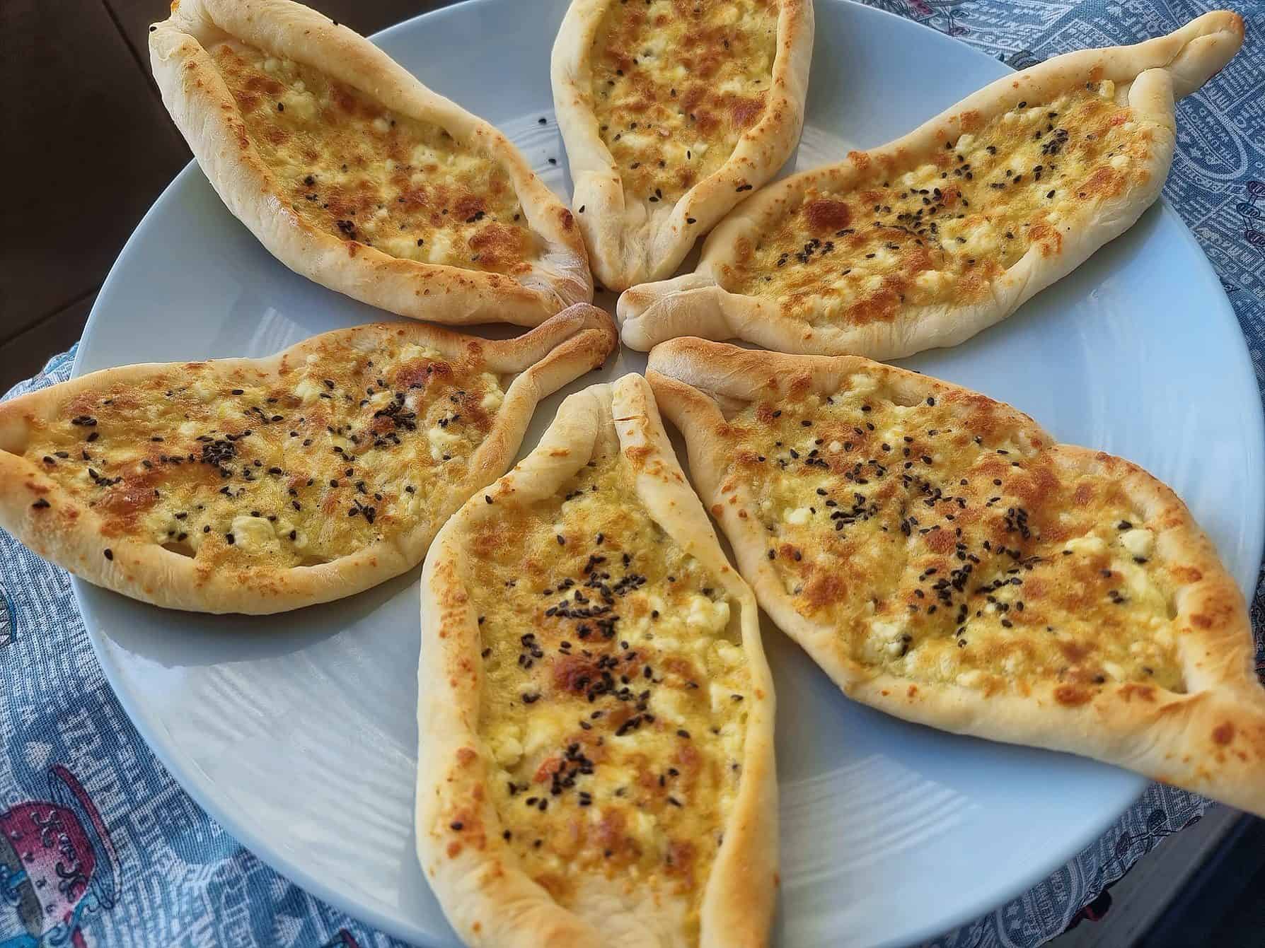 Cheese Pide: This is a Turkish pide pizza that contain filling of cheddar cheese and mozzarella cheese which is similar to fatayer.