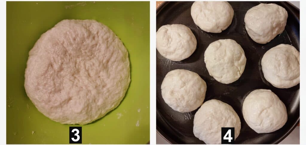 Once the dough had doubled in size, I removed it and used my hand to divide it into 8 pieces. I then shaped each piece into a ball and covered them again with a clean towel to set them aside