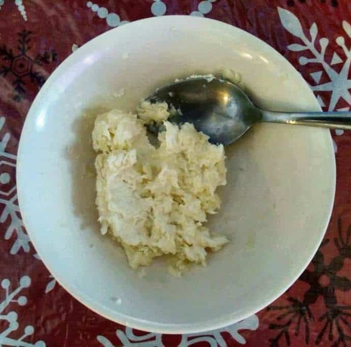 In this recipe, I grated the mozzarella cheese and get some cream cheese, which I transfer to a plate bowl. Mix them well, and then I set them aside to prepare to wrap my cheese samosas.