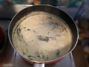 - Add the spinach and mix it well. Now you will let it boil for up to 5 minutes. While boiling, you add the parmesan cheese, salt and black pepper.