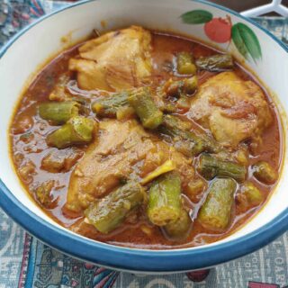 Chicken Bhindi is an Indian spicy okra masala recipe that consists of chicken thigh, okra, tomatoes, and other spices & herbs. It is best to serve with rice or roti bread.