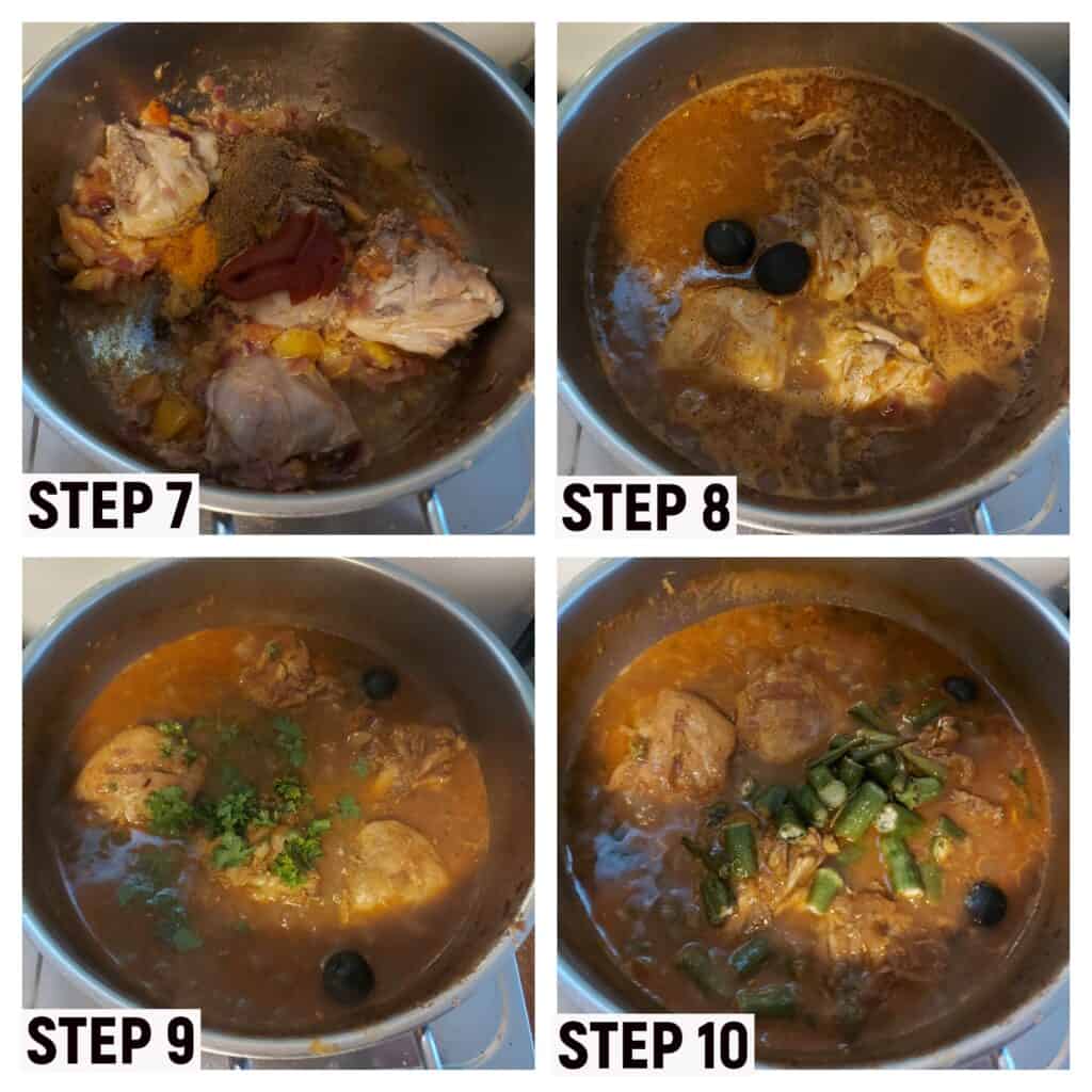 Once you are done with the okra, here are the next steps on how to cook this delicious chicken okra masala recipe: