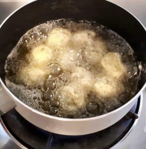 - Add oil in the deep frying pan in Medium Low heat. Once it is hot, put the croquettes in to the pan, and let it cook for 3 minutes or until it becames dark brown. After frying, served with any sauce you like.