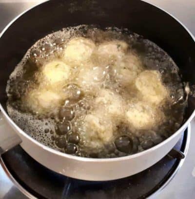 After your done cooking the chicken mixture, transfer into a tray, cover it, put it into a refrigerator for 1 hour. Avoid placing into the freezer, it will just make the chicken too hard, making it difficult for you to roll them into a ball.
