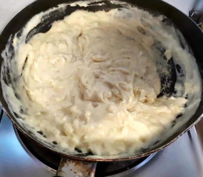 To cook the chicken croquette, first, add oil and butter in a large cooking pan. Once the butter melted, add onion and stir for few minutes or till light brown. Later, you add the chicken and parsley and mix it well. Lastly, add milk, flour, salt, and black pepper, and mix it well. Let it simmer for a few minutes.