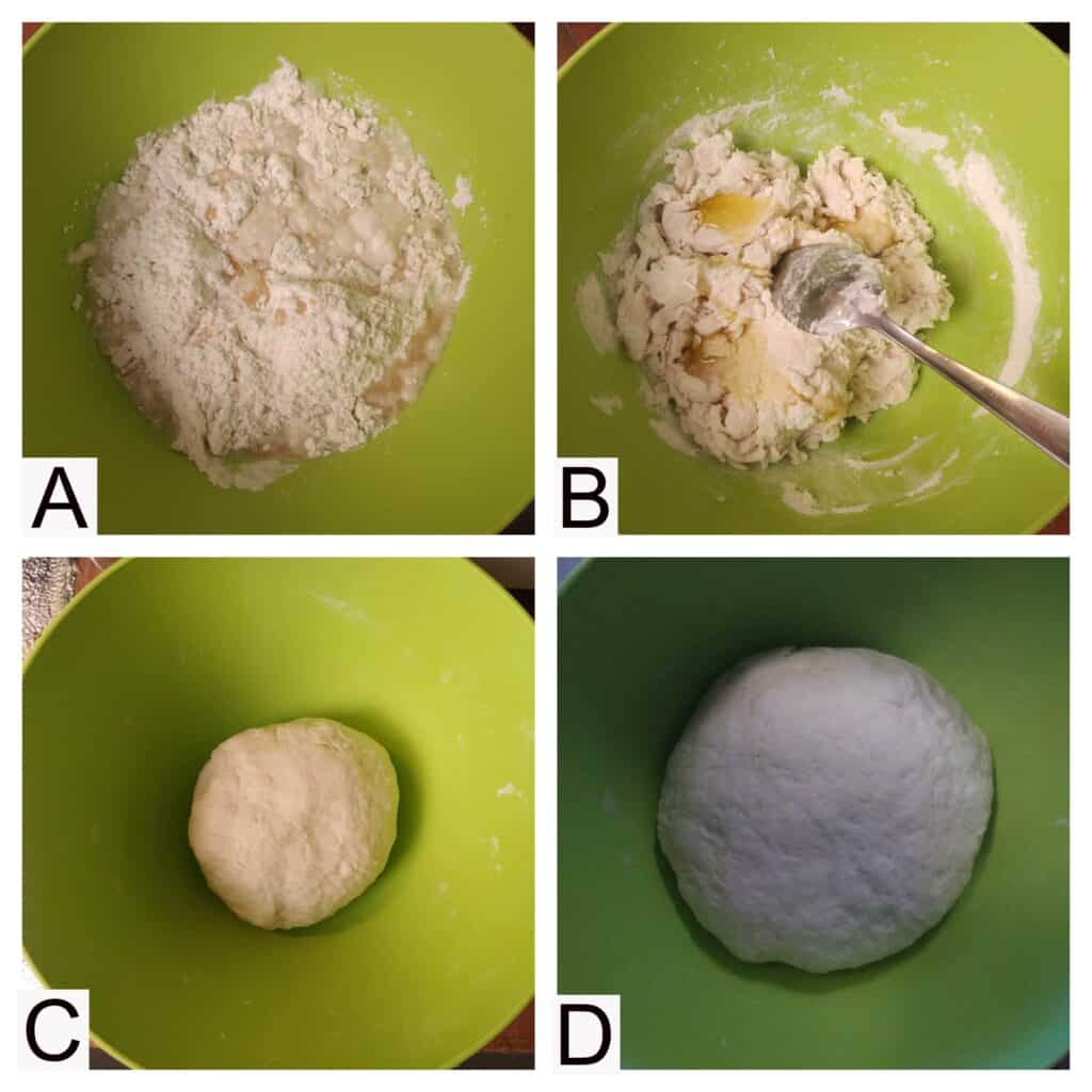 - Pour extra virgin olive oil, and continue stirring. Use your hand to knead until it becomes elastic and fluffy.