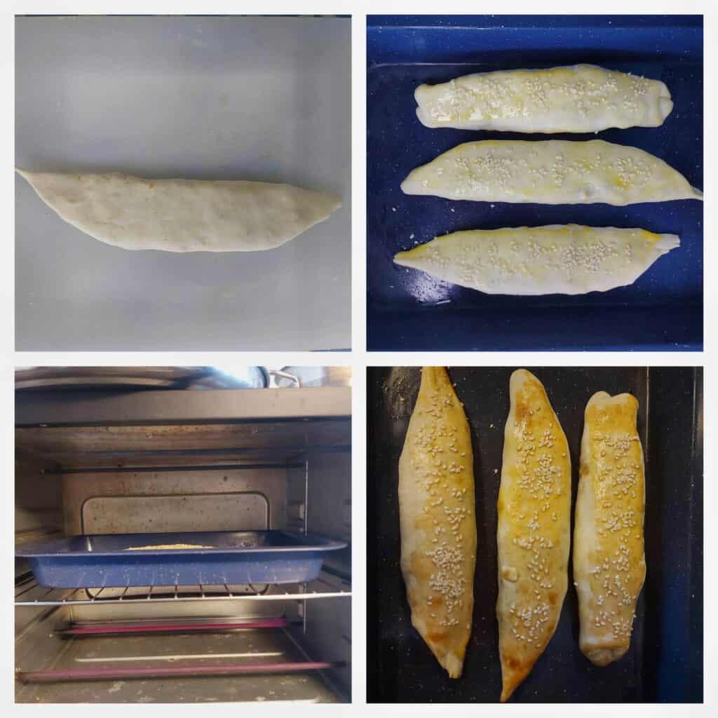 - Put the fatayer into the tray. Brush the dough with egg yolk and add sesame seeds on it.