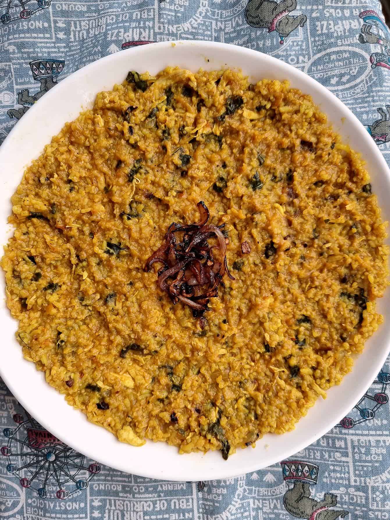 - Finally, add the golden-browned onions to the rice and gently mix to combine.