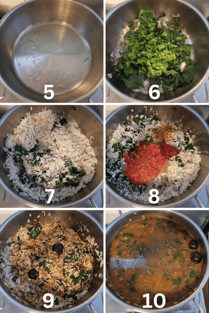 Steps 8 & 9: And then I added the spices, tomato paste, and the grated tomato puree. Stir it gently.