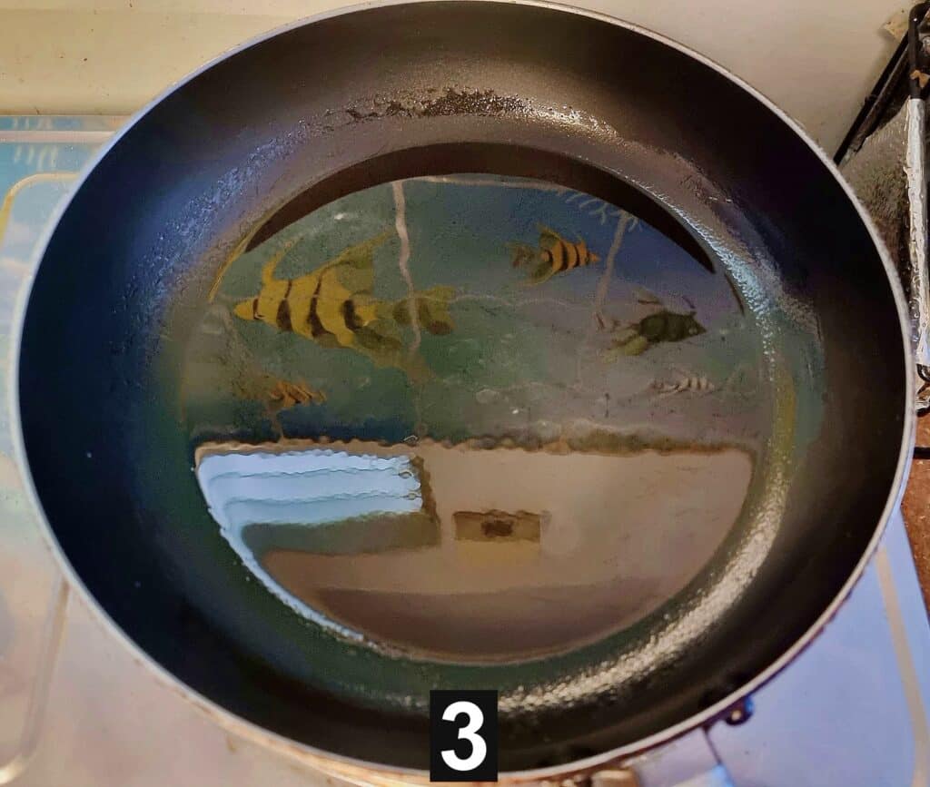 - To start cooking, I add vegetable canola oil to the pan on medium-low heat. Once the oil becomes hot, I add the chopped garlic and stir gently till it turns light brown. Get a teaspoon of this fried garlic and set it aside.