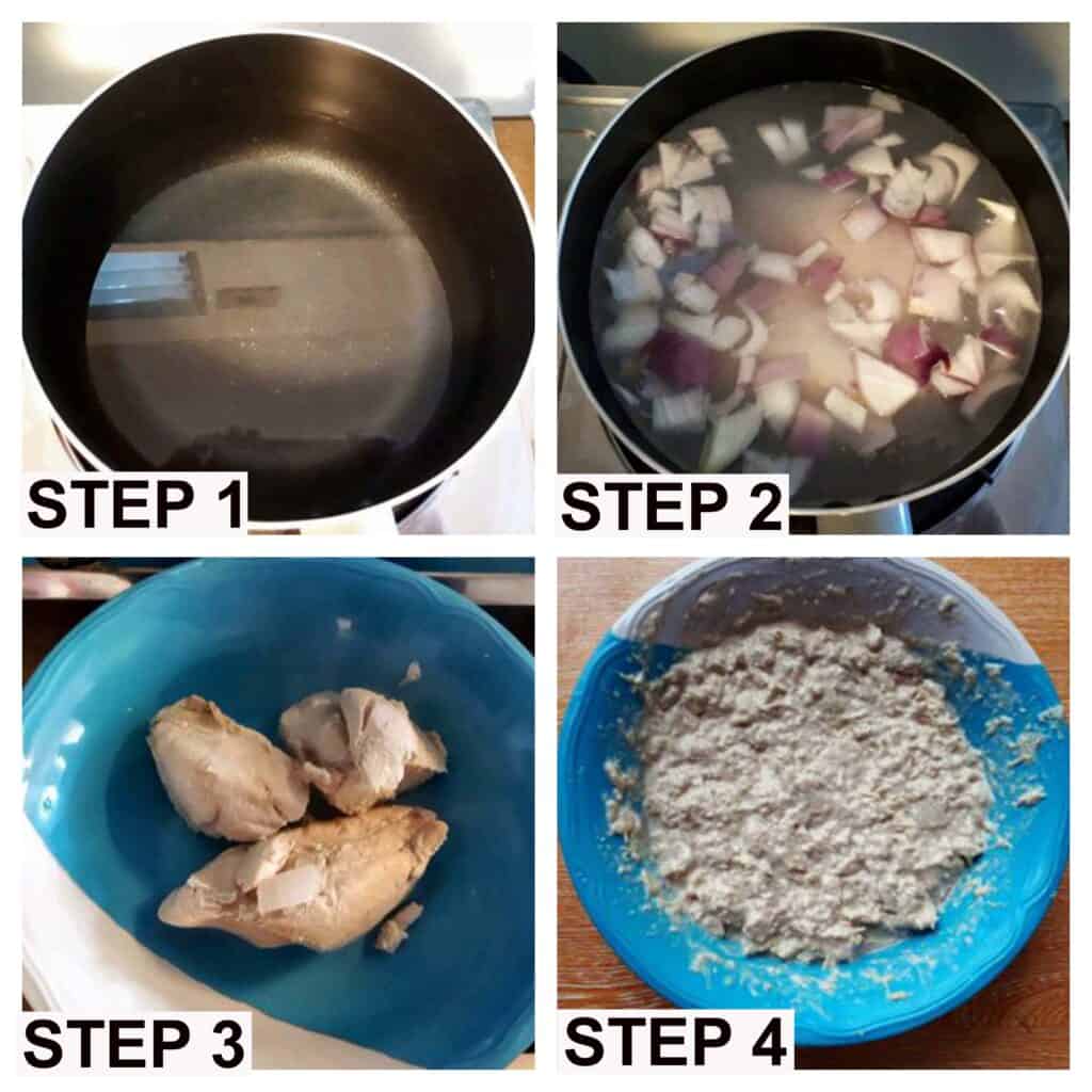 Also, you need a cooking pot where you will be boiling the chicken and put the onion there.