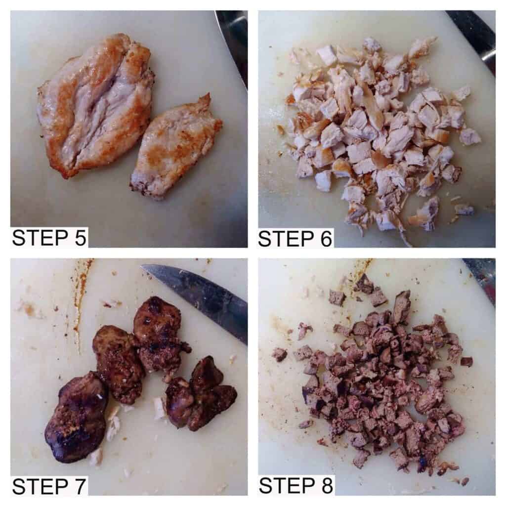 - Chopped both chicken liver and breast into smaller pieces. Put it into the plate and set it aside.