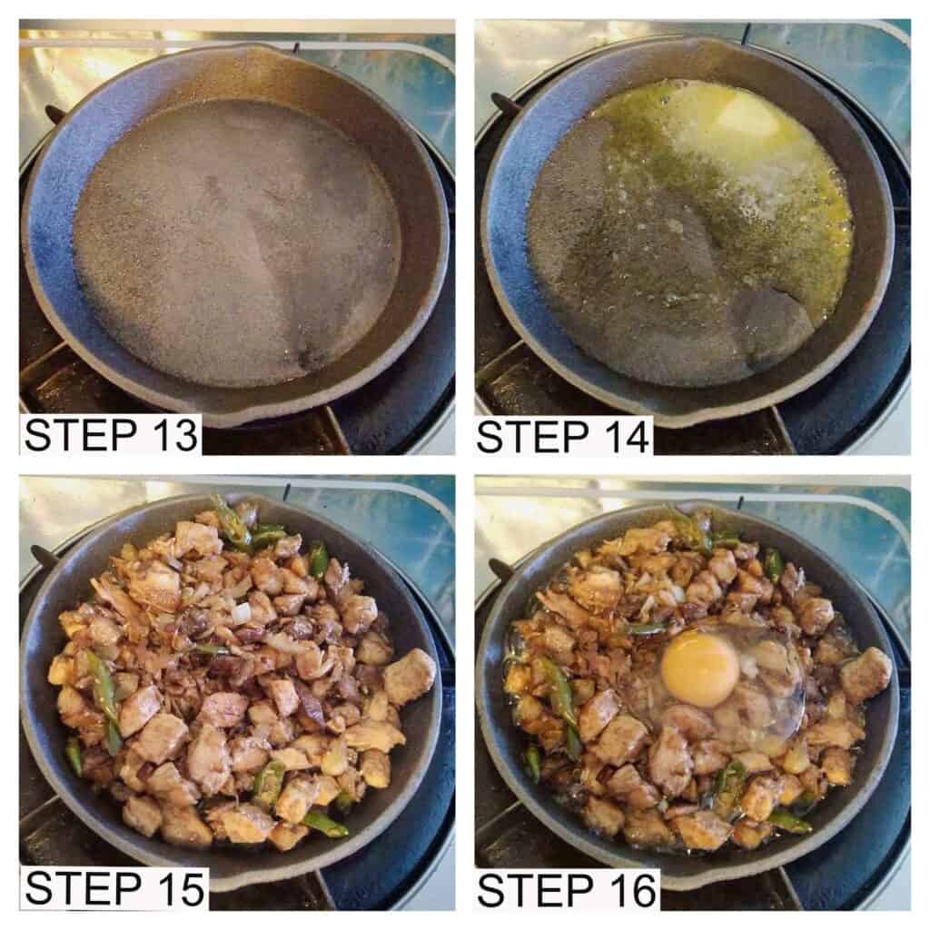 - Make a small space into the center of the sisig, crack and put the egg into that center.