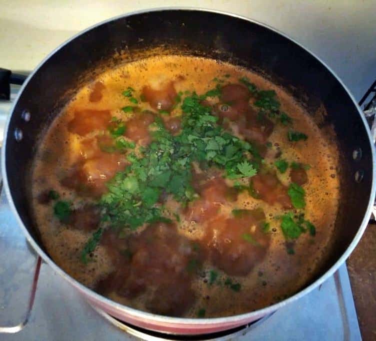 - Lastly, I just add the coriander leaves and give them a quick stir. Let it simmer for 3 to 5 minutes before serving.