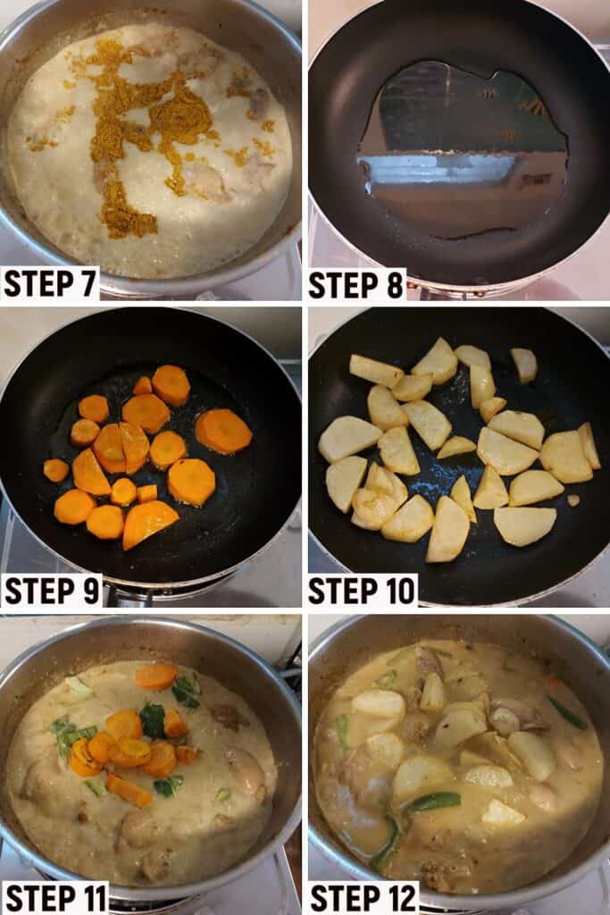 - While waiting for the chicken to be cooked, I pan-fried the potatoes and carrots in a separate pan. You can just half-cooked it since the rest will be done when you transfer it to the cooking pot.