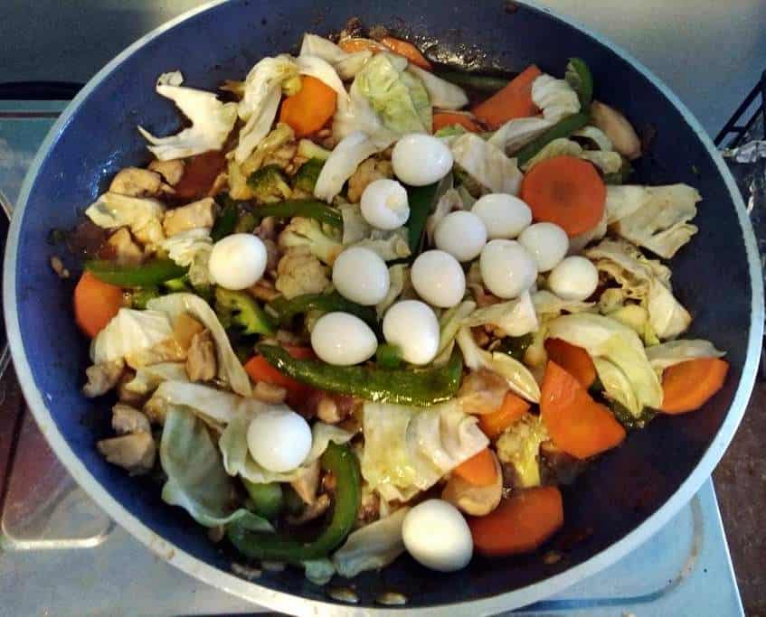 MEAT: In the Philippines, we include meats in our chopsuey, which I add chopped chicken breast and quail egg. The quail egg makes this stir-fried vegetable dish tasty, and chicken breast is much healthier than other types of meats.