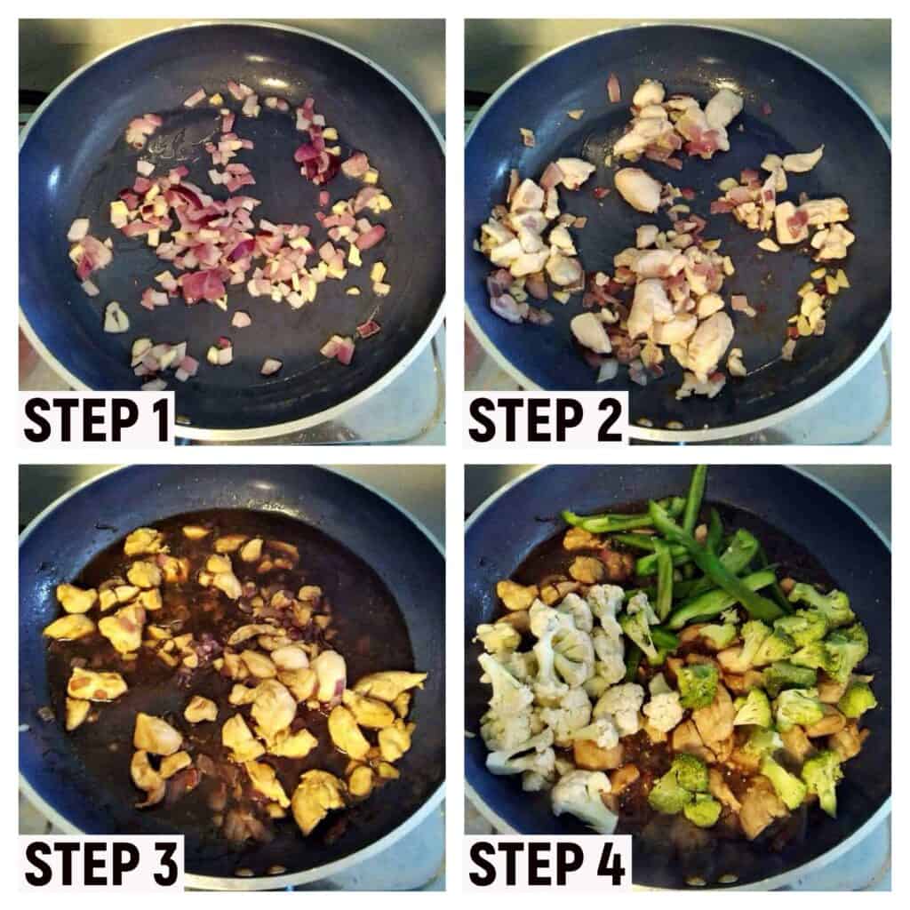 VEGETABLES: In this recipe, I only use 5 kinds of vegetables- Cabbage, Broccoli, Cauliflower, Bell Pepper, and Carrot. You can add other green vegetables of your choice, but to me, this is more than enough.