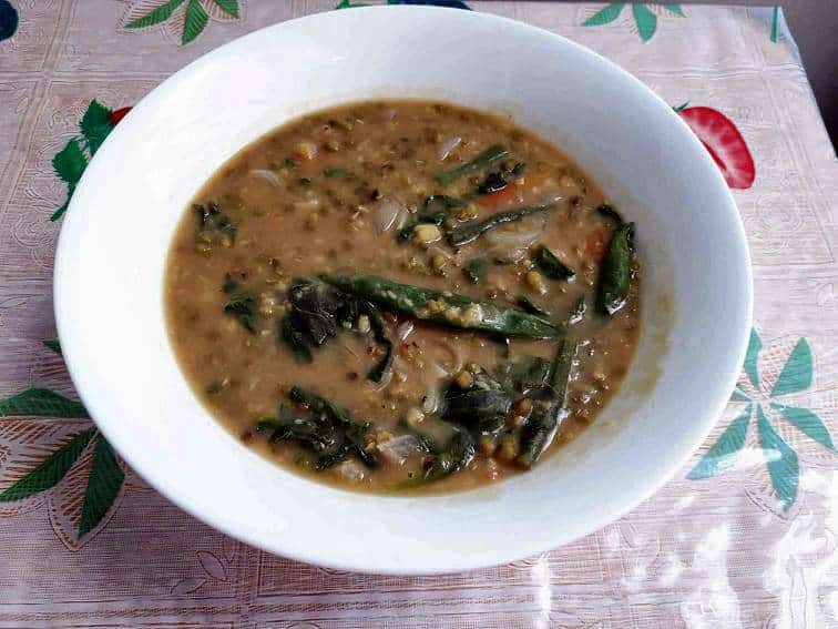 Ginisang Monggo is a Filipino Mung Bean soup recipe that is mixed with spinach leaves and green beans. It is a healthy vegetarian dish that is best served with white rice.